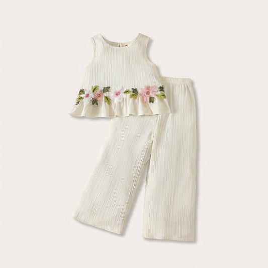 Pink Floral Peplum Top and Pants Set